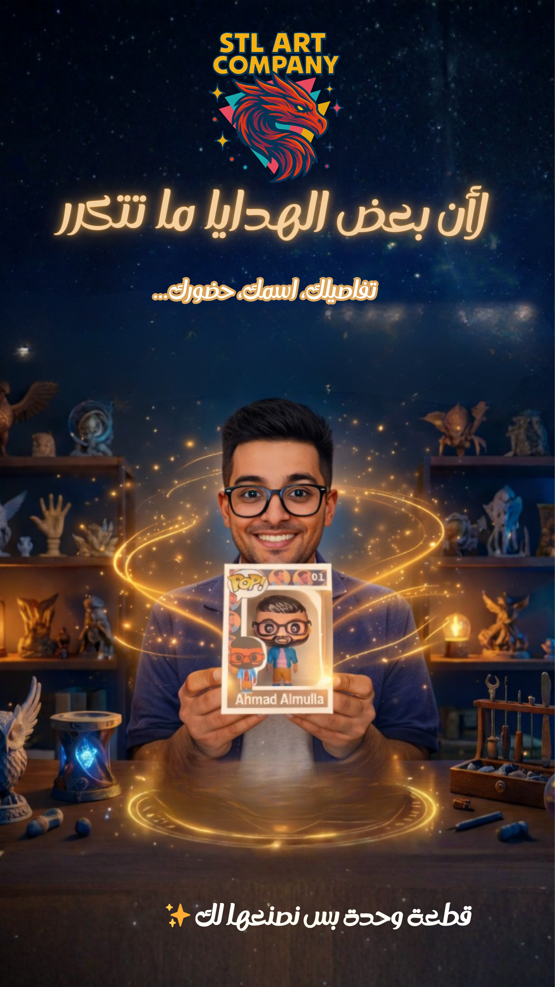 هذه نسخة مصغّرة منك بأسلوب البوب المحبوب، مصممة خصيصًا حسب صورتك وتفاصيلك، لتكون قطعة فنية لا تتكرر.